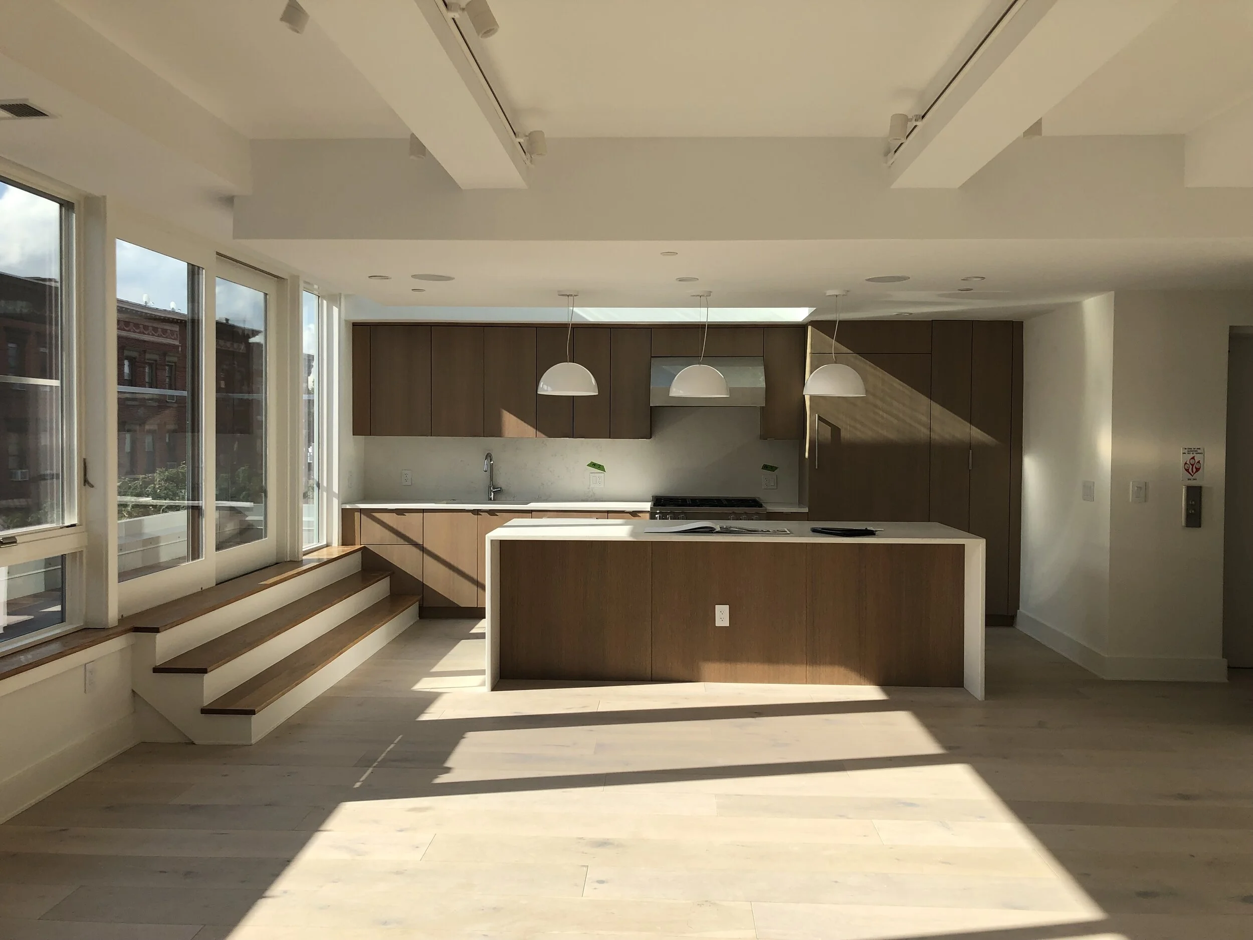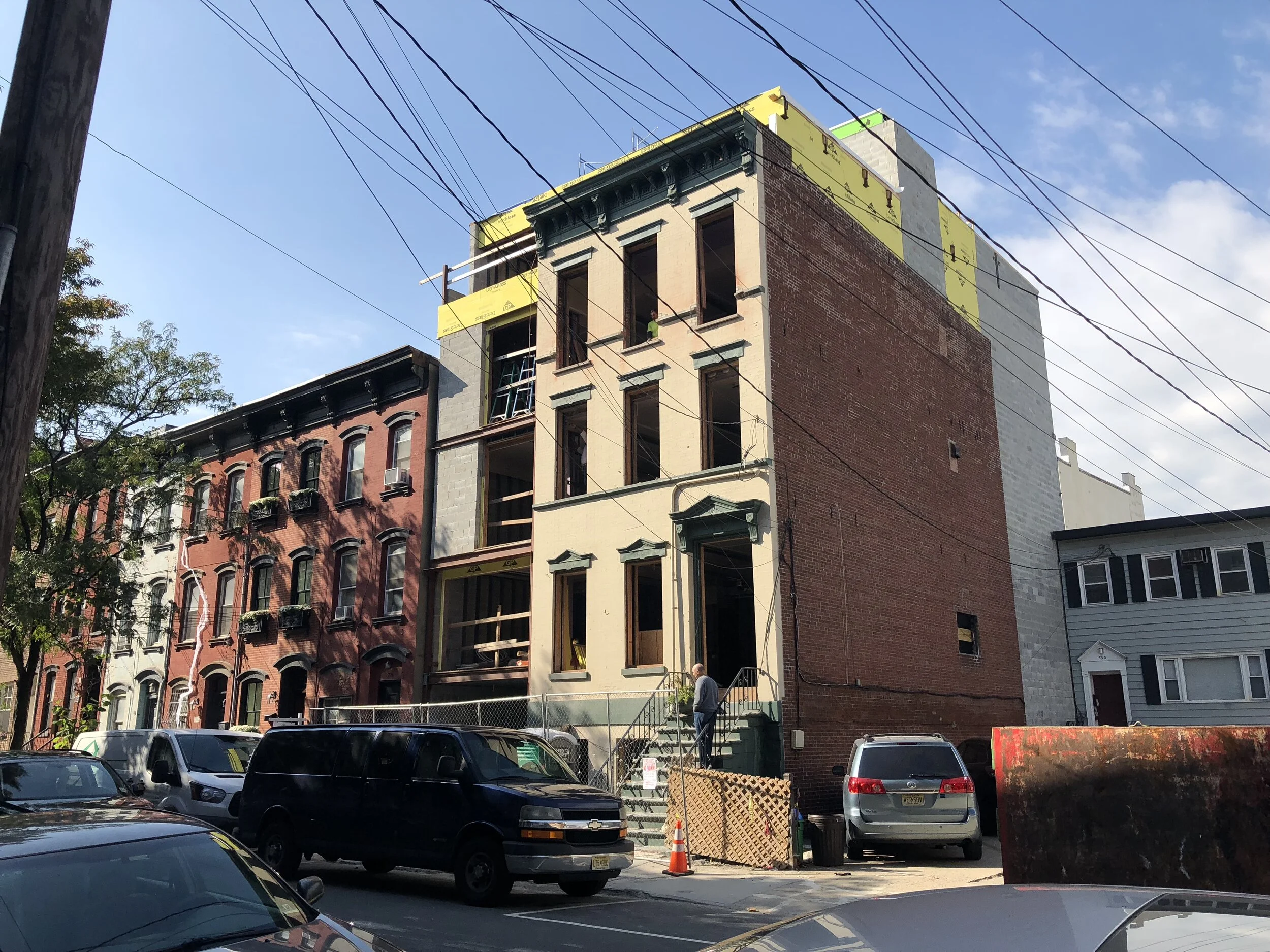 The characteristics of a vacant lot and historic brownstone provide the perfect scenario for an architectural design. Here the new construction of the infill lot surpasses the height of the existing structure next door; maneuvering up and over it. History is preserved through a modern collaboration of new and old.