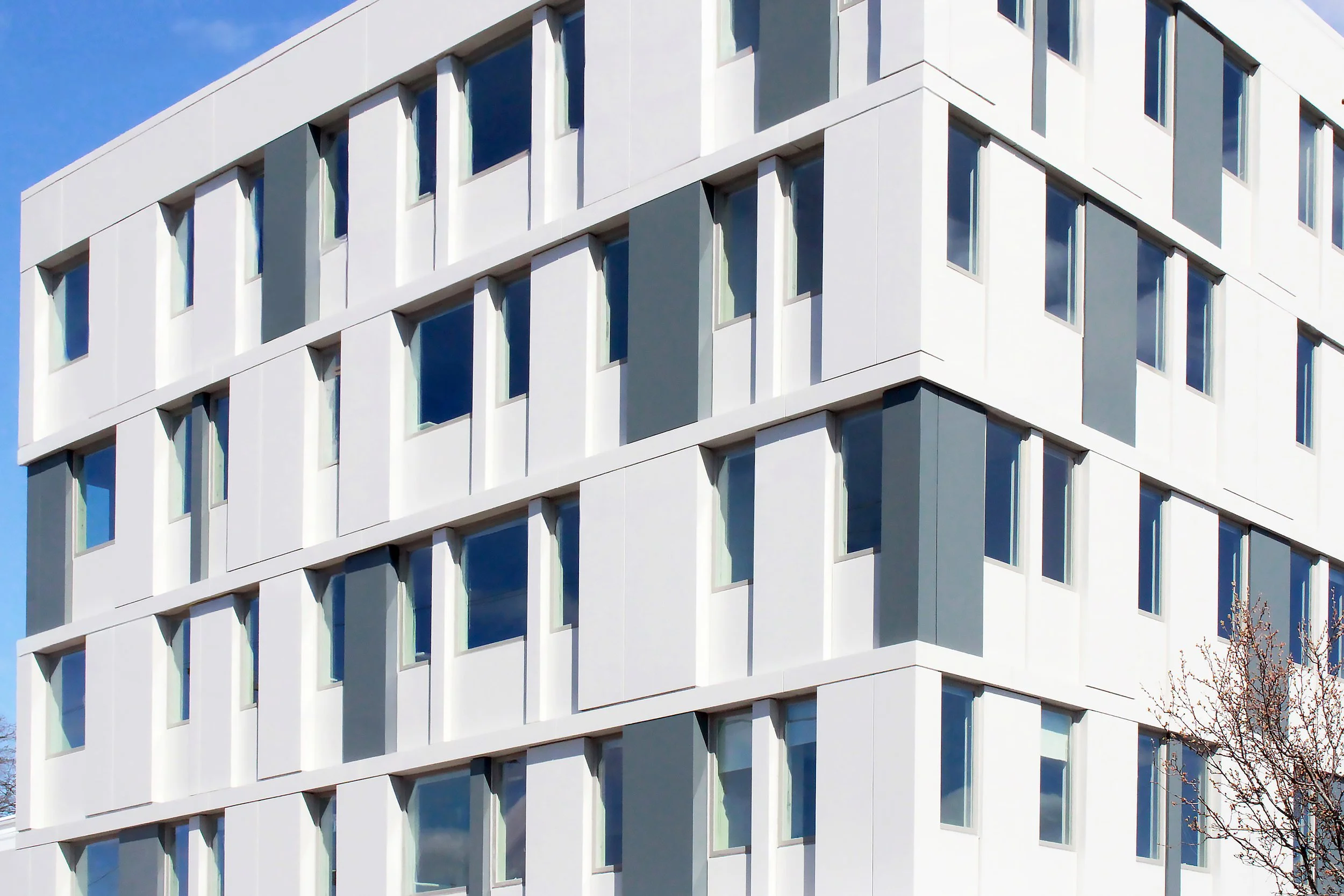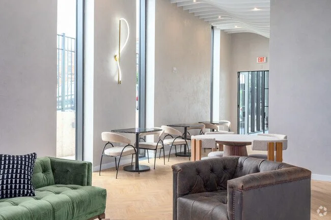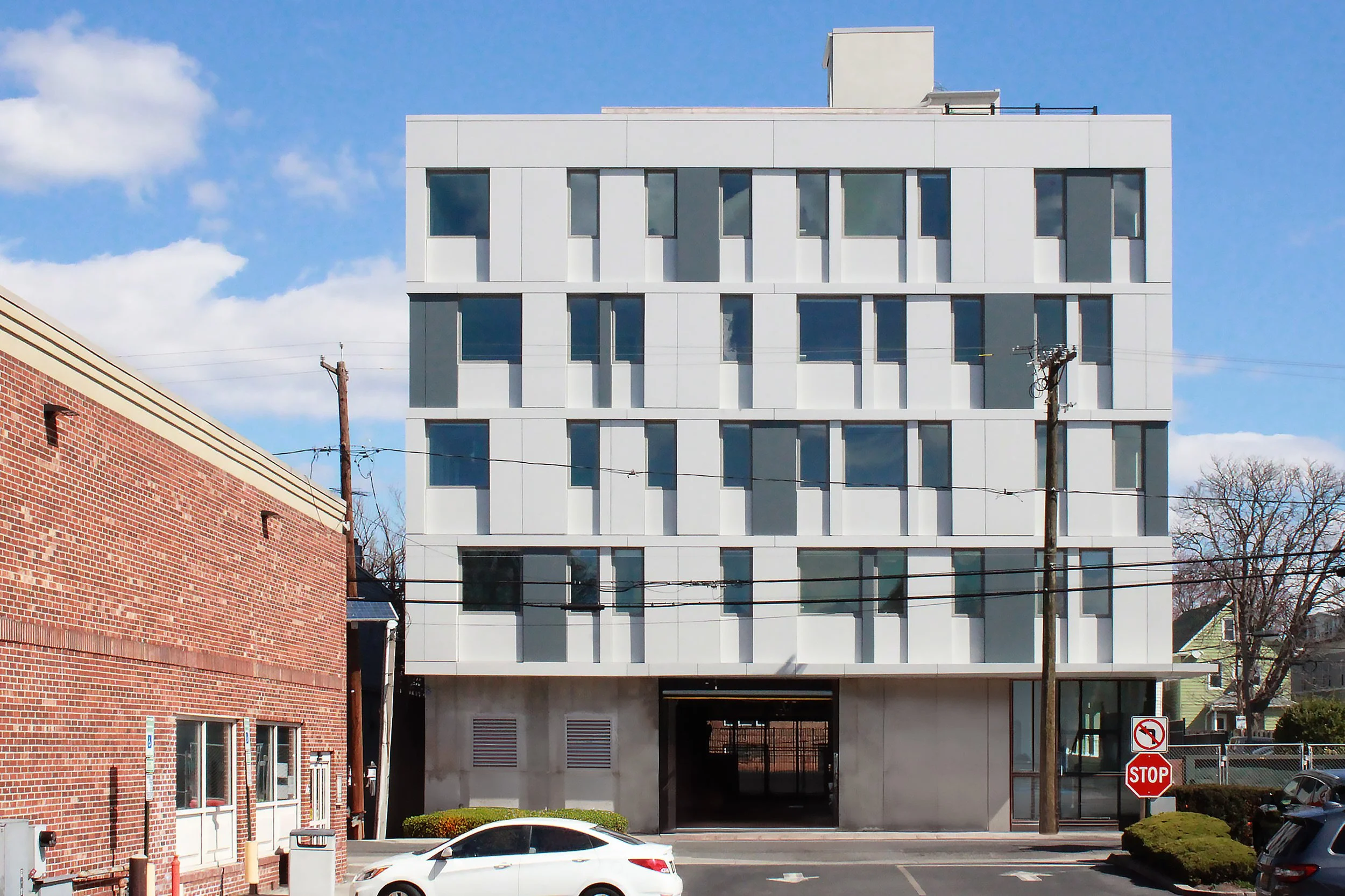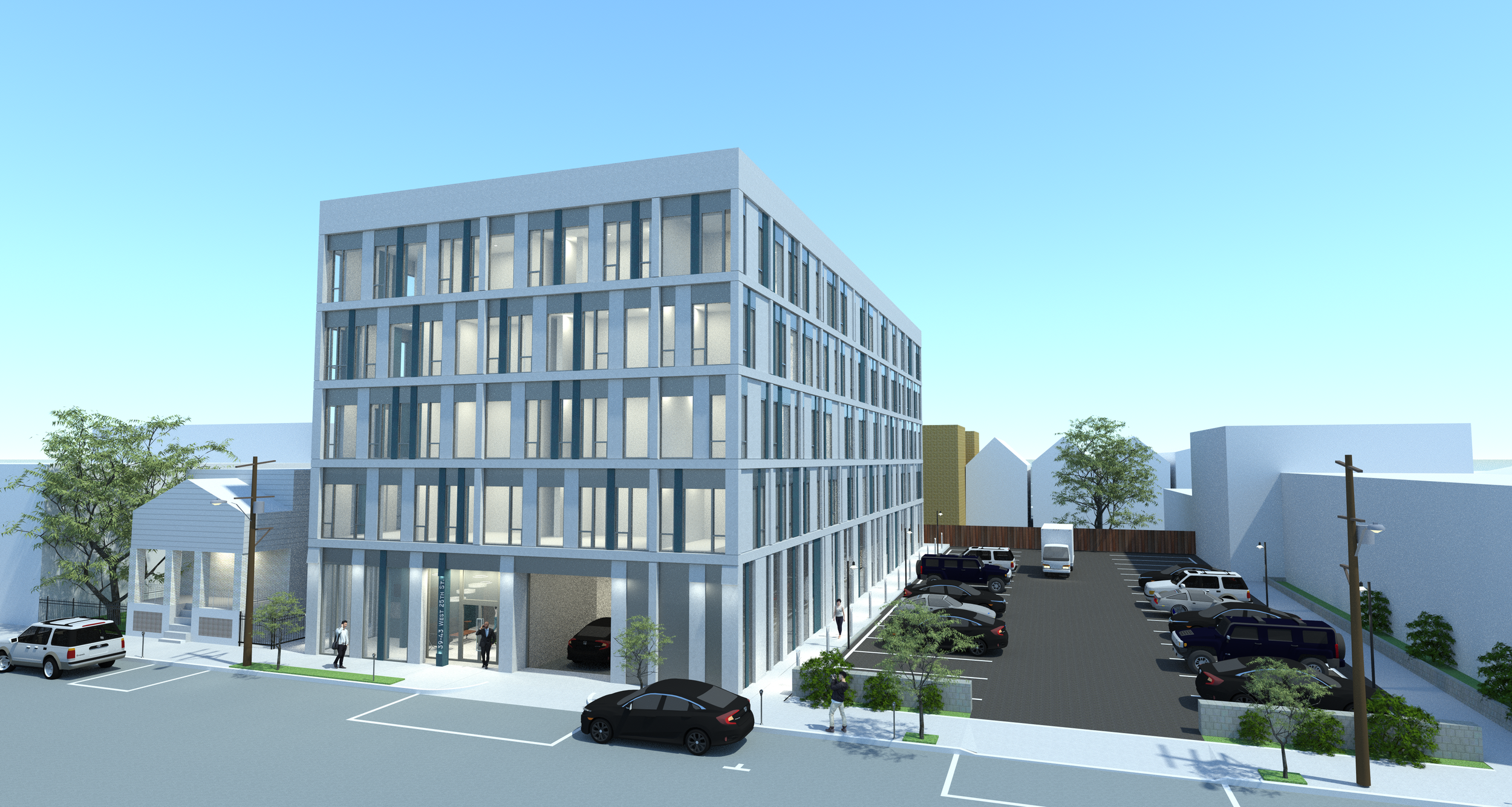 This redevelopment project sets a new standard for the area's luxurious apartment living. The architectural idea breaks down a large façade in to a smaller scale; this idea articulates a panelized system of different sizes and colors. An entry to the building is implied by a canopy extending out from this system. The residential floors are elevated to provide for parking and amenities at the ground floor. A state of the art stacked parking system enables twice the amount of parking possible for the site.